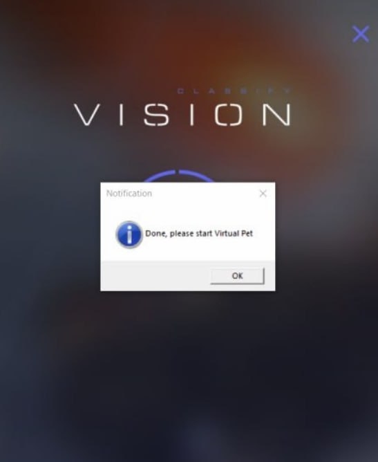 If the injection is successful, a notification will appear: “Done, please start Virtual Pet”.