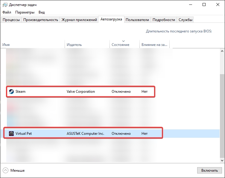 Disable Steam and Virtual Pet (if Virtual Pet is available in startup).